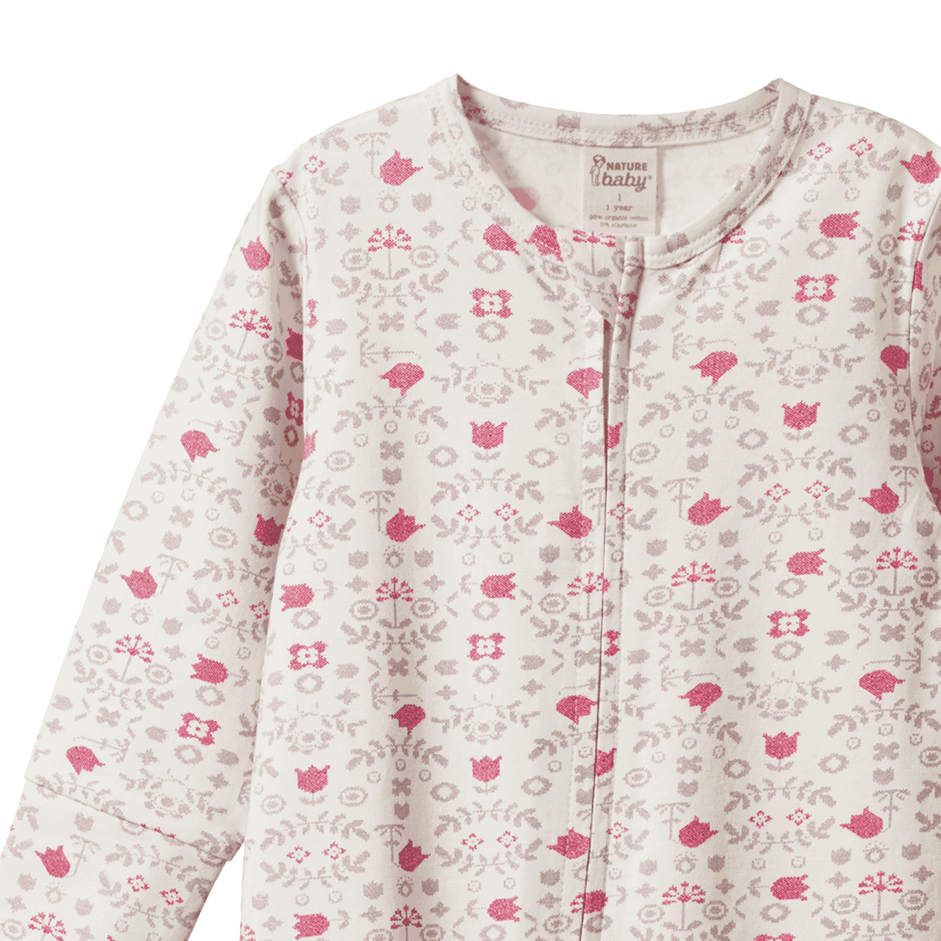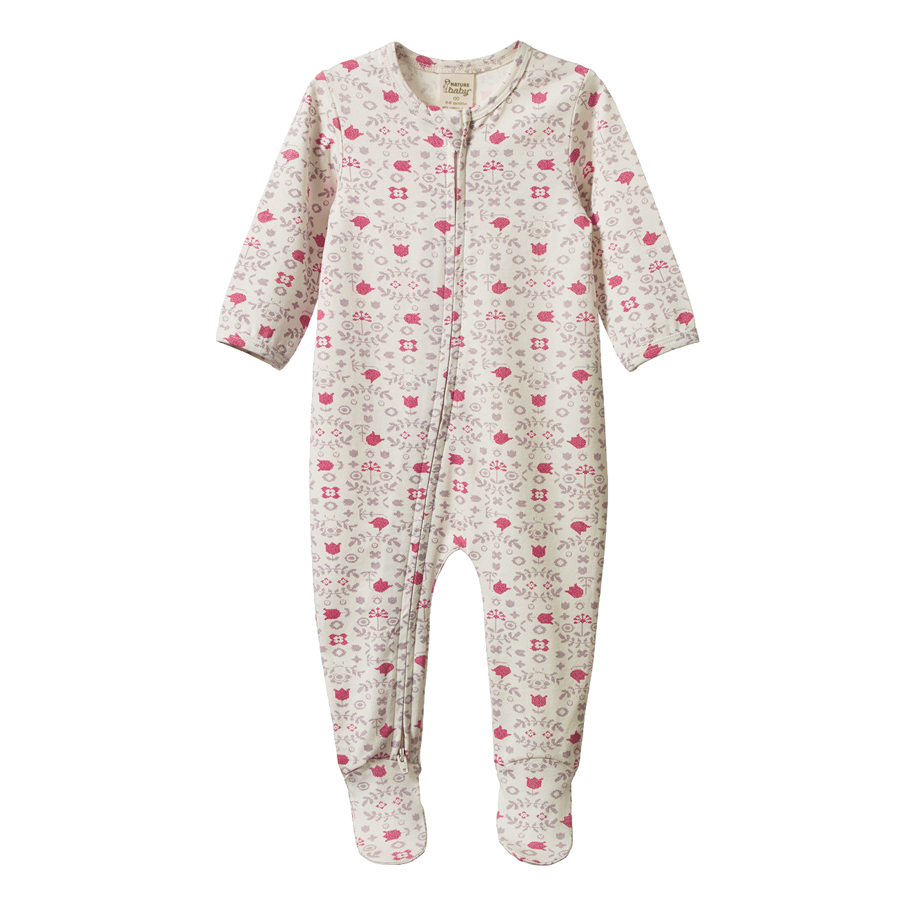 Our Dreamlands suit features a full length double ended zip for easy dressing and night-time changes. With enclosed feet to keep little one cosy overnight, in soft comfortable stretch organic cotton.